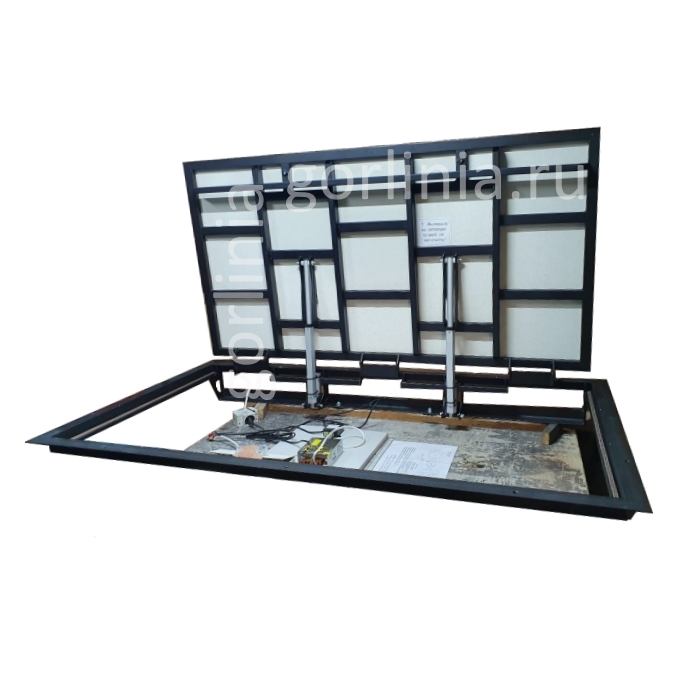 Створка открывается 2-мя интегрированными линейными актуаторами, управляется синхронно контроллером собственной разработки завода: