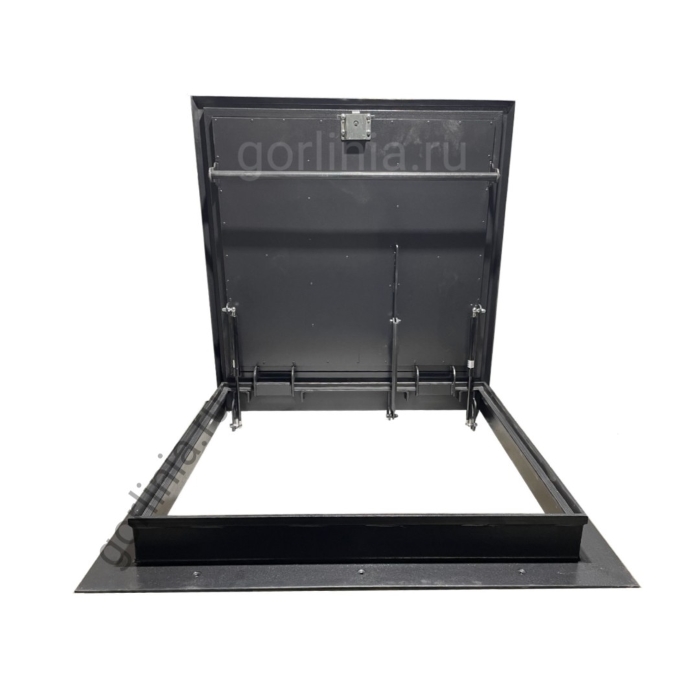 Откидная крышка закрыта сверху гладким стальным листом с загнутыми к низу краями, вылетающими на 30 мм за периметр коробки. Внутри каркаса откидной двери между ребрами обвязки проложен рулонный минеральный утеплитель 50 мм, подшитый снизу листом 1 мм.